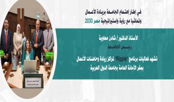 شهدت السيدة الأستاذ الدكتور / شادن معاوية – رئيس جامعة مدينة السادات اليوم الأربعاء ٢٦ من يوليو 2023 فعاليات برنامج "Ripple" لدعم مراكز وأنشطة ريادة الأعمال وحاضنات الأعمال بالمشاركة مع الأكاديمية العربية للعلوم والتكنولوجيا والنقل البحري، والمجلس الأعلى للجامعات، والوكالة الدولية للتنمية.